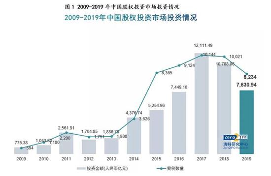 ![]() 一方面募資艱難,另一方面投資也持續降溫。2019年中國股權投資市場投資案例數為8234起,同比下降17.8%;投資總金額為7630.94億元,同比下降29.3%。